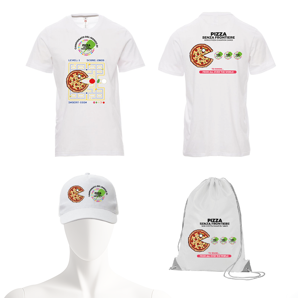 T-shirt, bag and cap branded Pizza Senza Frontiere 2026