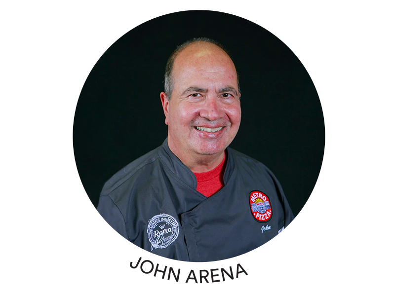 John Arena è un pizzaiolo di terza generazione con quasi 50 anni di esperienza. È proprietario e co-fondatore di Metro Pizza, una catena di pizzerie che conta 7 locali, ma anche un insegnante dell'arte bianca. Metro Pizza è stata selezionata tra le 10 migliori pizzerie degli States nel programma "Everybody Loves Pizza" di Penny Pollack e Jeff Ruby. John è stato ospite di "Entertainment Tonight" e "Live with Regis and Kathy Lee". Metro Pizza è stata inserita anche tra le 10 migliori pizzerie del paese da USA Today.